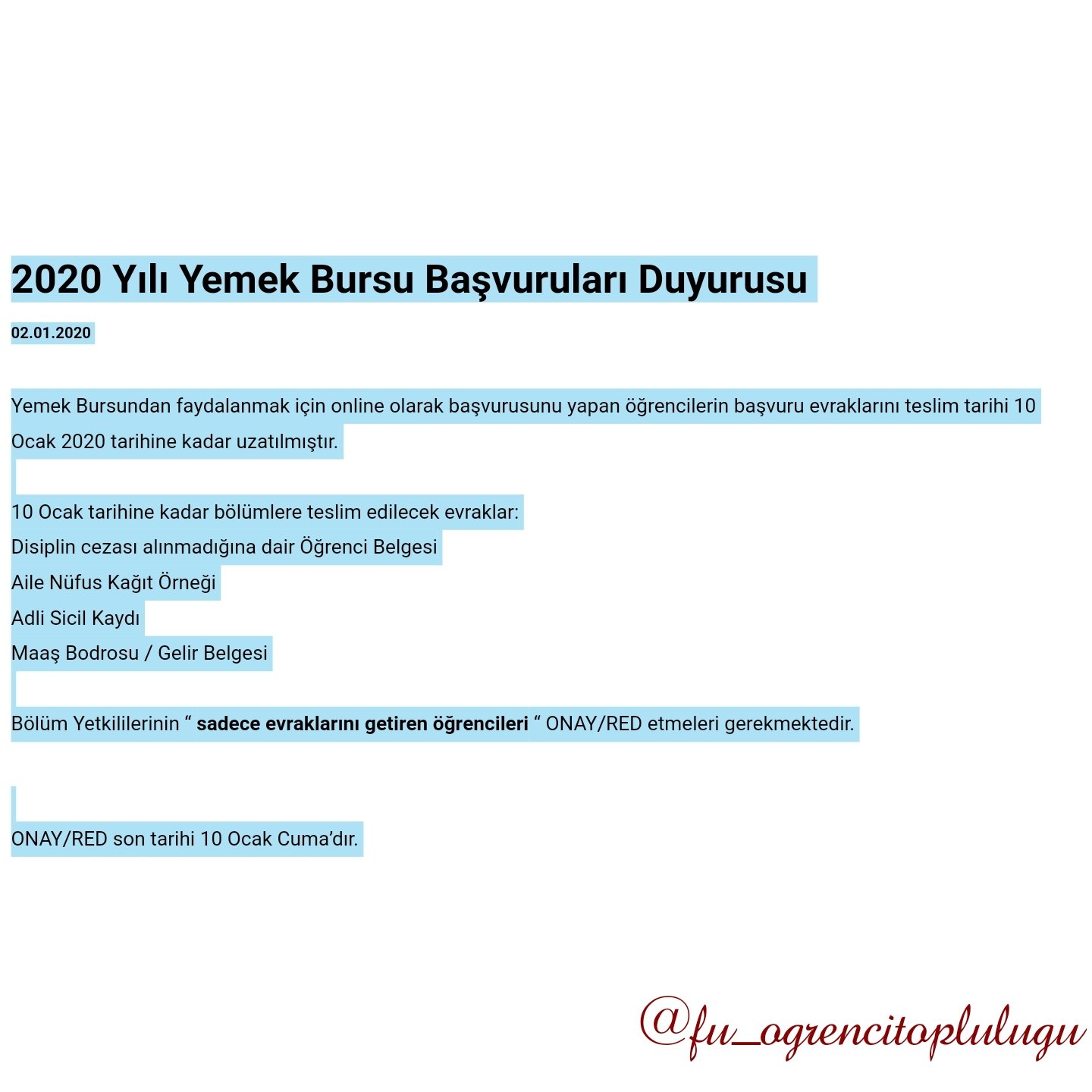 Fırat üniversitesi yemek bursu. 2017 yılında yemek bursu kazanan öğrencilerin bu hakları 31 aralık 2017 tarihi itibarıyla sona ermiştir. 2020 yılı yemek bursu sonuçlar. Burs başvuru başlangıcı. Başvuran öğrenciler istenilen belgeleri yabancı diller eğitimi bölüm sekreterliğine teslim edecektir.